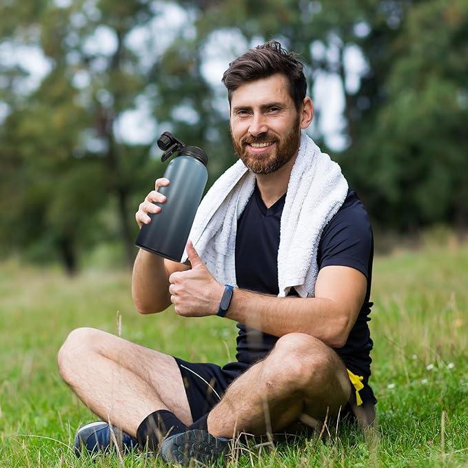 • 3 Capacities: This water bottle is available in 3 capacities: 32oz, 40oz, and 64oz, providing options to suit your preferences. Catering to your needs in various scenarios such as outdoor activities, sports, fitness, off-road adventures, camping, and office.