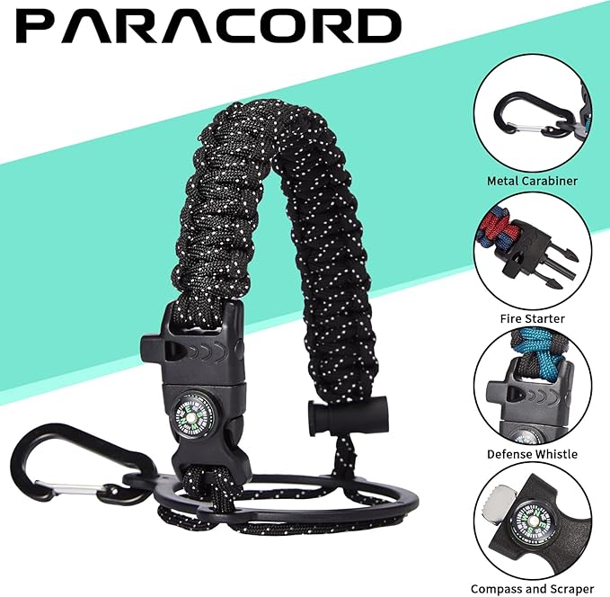 • UNIQUE PARACORD—Perfect Accessories: bright color paracord matches the flask water bottles to give you a youthful vibe while adding a personal style. It comes with a compass, safety loop, metal carabiner, flint, igniter, and whistle to become your survival tool for your wild adventures