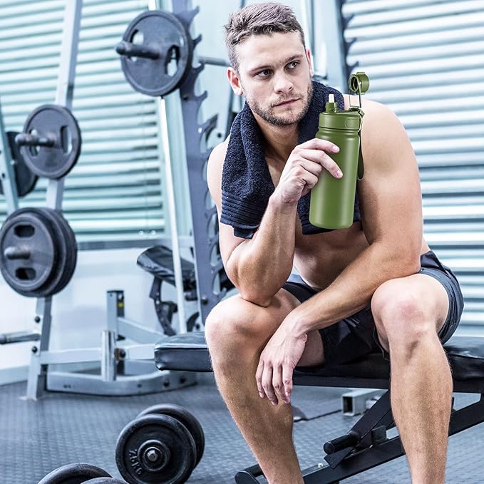 25 oz gym water bottle with straw, leak proof - men's/women's sports metal water bottle - double vacuum insulated stainless steel water bottle for gym, outdoors or traveling