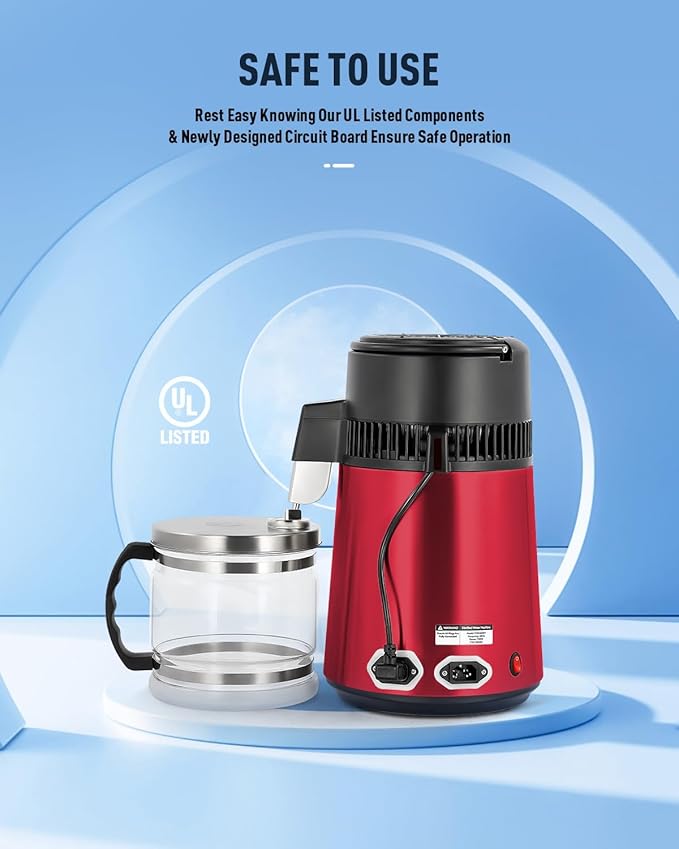 • Made of 304 stainless steel and borosilicate glass for the water pitcher, this BPA-free distilled water machine will withstand corrosion for years to come with easy maintenance.