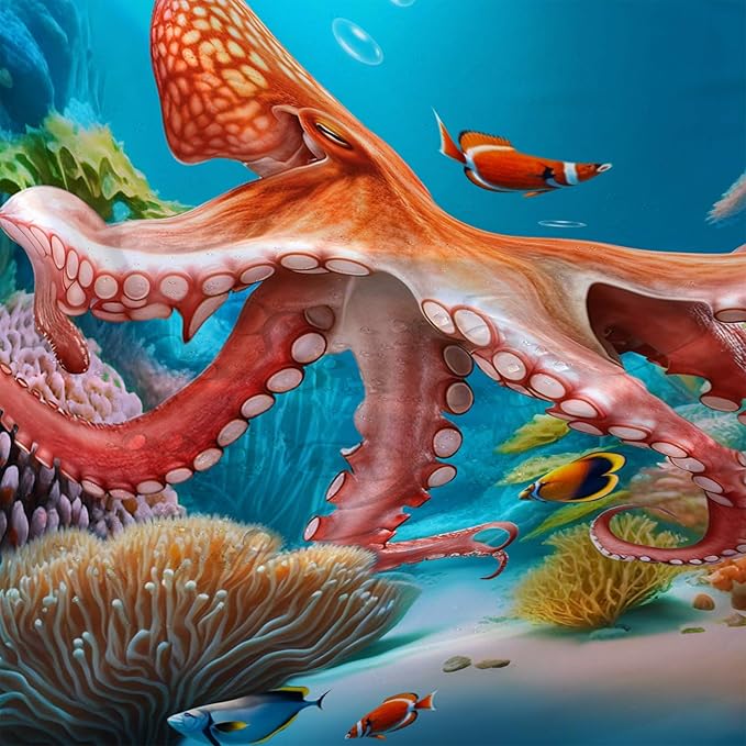 AILONEN Kawaii Octopus Shower Curtain,3D Octopus Turquoise Themed Bath Curtain Cloth Fabric Bathroom 72" W*84" H Inch,12 Pack Hooks for Kids Child,Boho Mandala Ocean Theme Bathroom Curtain