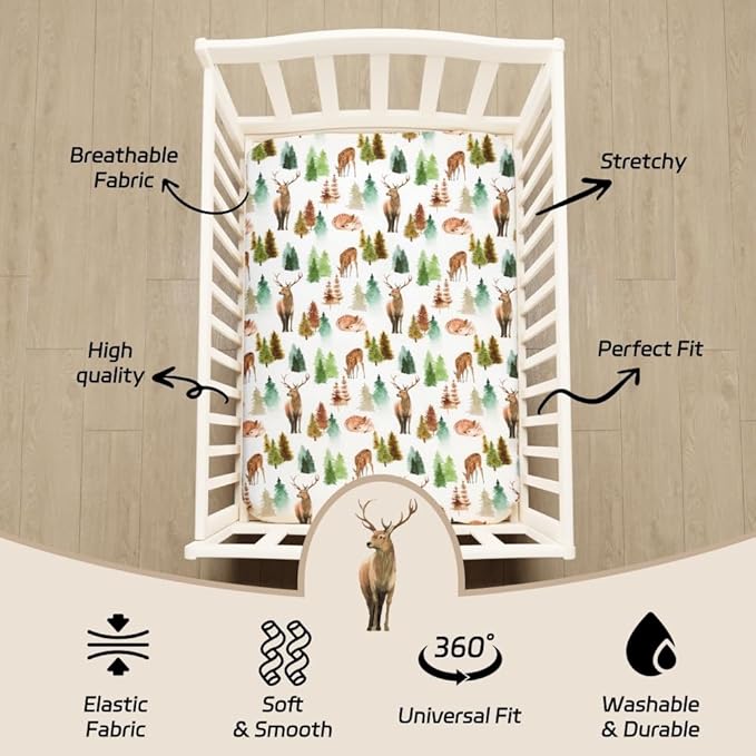 • HIGH QUALITY WITH UNIQUE WOODLAND DESGINED: Bring the cozy look reminiscent of forest design into the little baby’s room with woodland crib sheets. Made from soft material, the crib sheets will not fade with bright color.