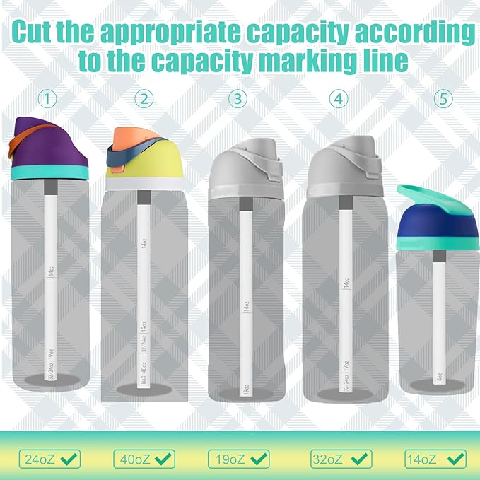 • Ideal Design: These water bottle stoppers are practical accessories with good sealing properties, which can effectively prevent leakage. The initial length of this straw is suitable for the Owala FreeSip 40oz. The surface of the straw is marked with a capacity scale and can be cut to the desired length according to the scale.