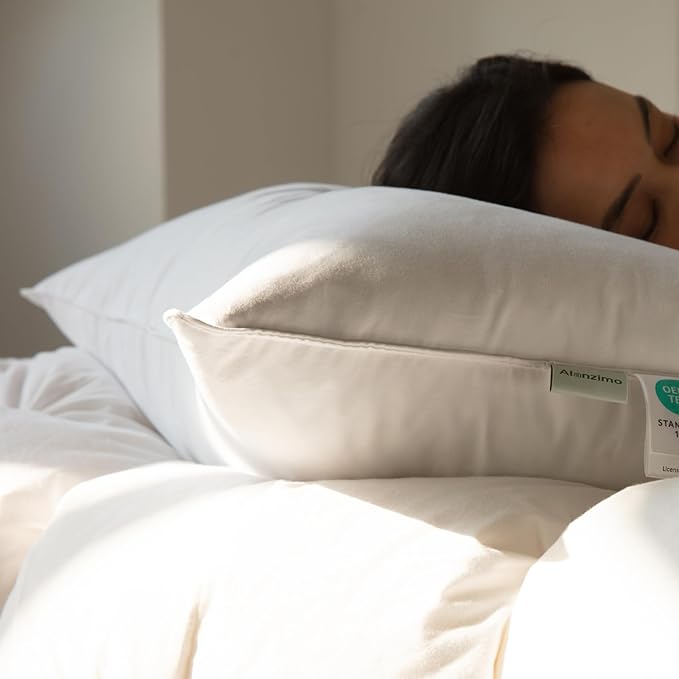 • Get Nice Sleep-- This down feather pillows encased in a 600TC exquisite organic cotton percale that is OEKO certified for its safety. Perfect for those with soft skin, keeping you cooling and comfort all night long. Enjoy a comfortable and restful sleep with our hotel pillow without any feather poking or smell