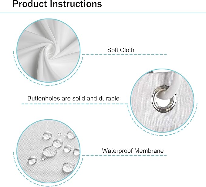 • ▶What' s Included: Each fabric shower curtain features 12 high-quality plastic hooks.