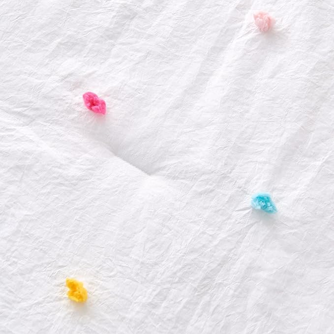 • 🎈BOHO BEDDING SETS - Super soft colorful pom pom toddler bedding set, solid white bedding set, designed with cute tufted pom pom, it is a sweet choice for a baby girl bedroom set, good to decorate a cozy, comfortable, and dreamy toddler bed.