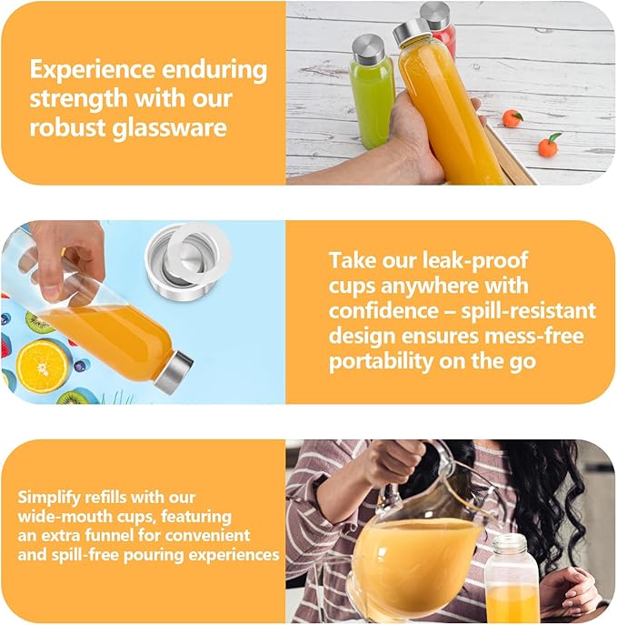 • 【Versatile Design】Unleash the potential of your hydration routine with our dual-purpose glass bottles, perfect for both water and juices