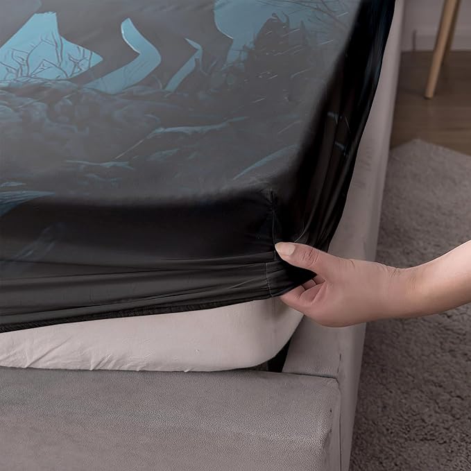 • ✔️【Full Size】: Experience luxury and softness with our Wolf fitted sheets. Crafted from 100% microfiber, they provide a cozy and breathable sleeping surface. The set includes 1 Fitted Sheet (54"W x 75"L x 16"H) and 2 pillowcases (20" x 30"). (No flat sheet)