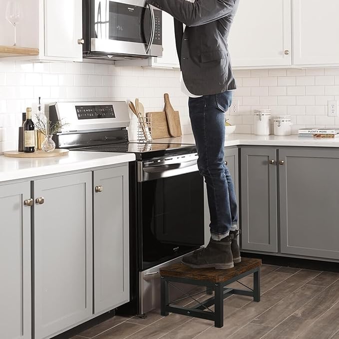 • Safe & Reliable Materials: Our step stool is made of high-quality p2 board and sturdy metal frame, safe and eco-friendly, which meets the EPA TSCA Title VI and Carb Certification, is waterproof, easy to clean, scratch-resistant, eco-friendly.