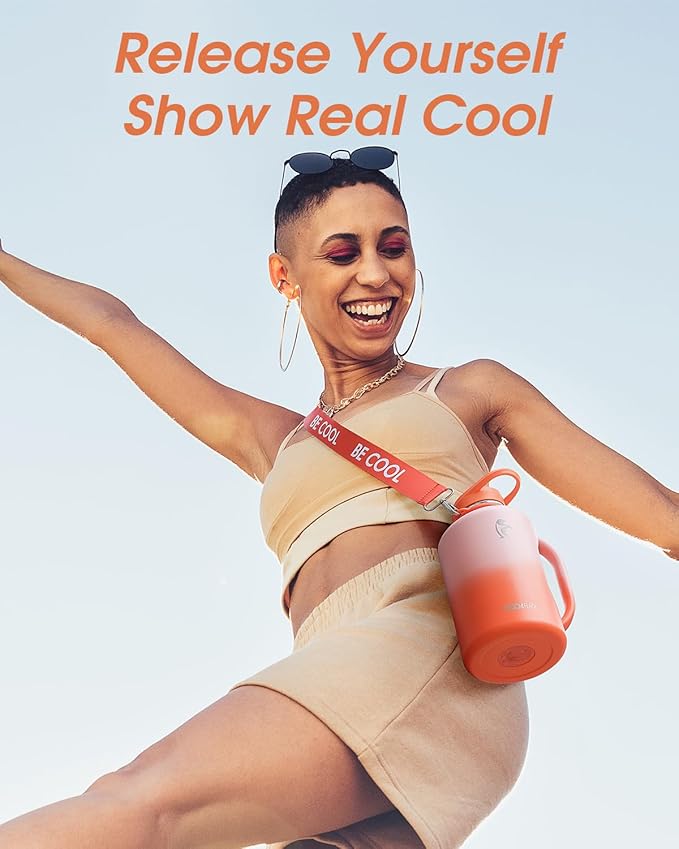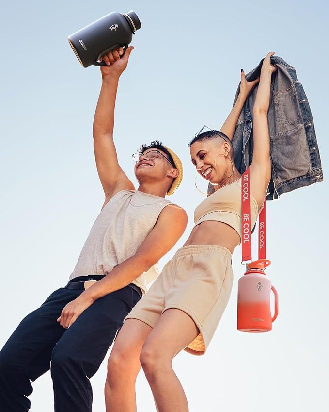 • Unleash Your Style, Hands-Free: Elevate your fashion game with this half gallon water bottle's exquisite adjustable shoulder straps and eye-catching design. Whether worn crossbody, single-shoulder, or hand-held, it's a statement piece that complements your vibrant personality.