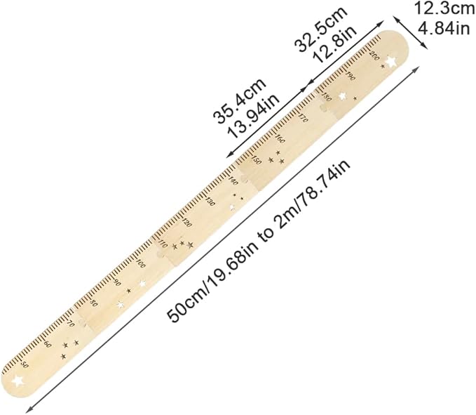 • 【Size】The height chart for kids pieces measuring 35.4x12.3x0.3cm(3)/13.94x4.84x0.12inch(2). When plugged together, the printed scale measures 50 cm to 2 m.