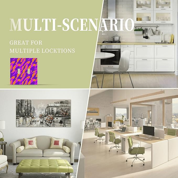 Neon Colors Colorful Double Toggle Light Switch Covers 2 Gang Wall Plate Dual Decorative Switchplate Electrical Faceplate for Bathroom Country Kitchen Bedroom Decor, 4.9" x 5"