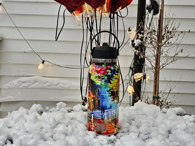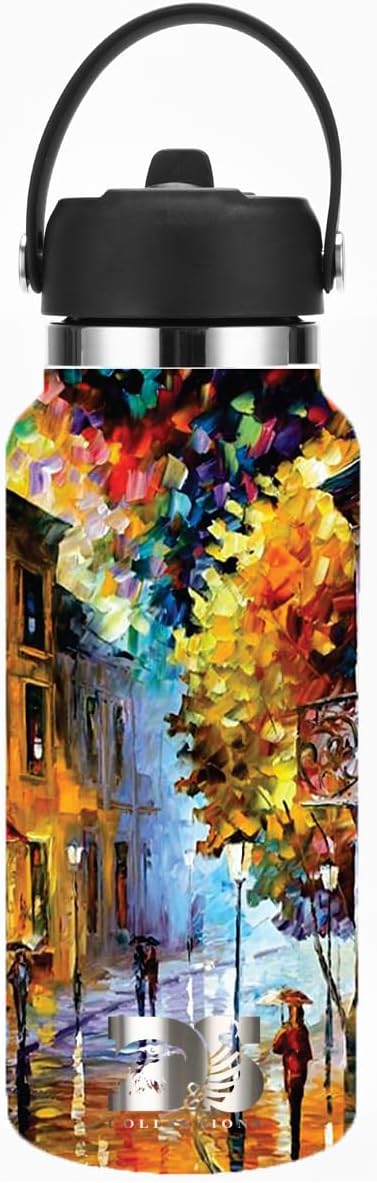 32oz Stainless Steel Sports Water Bottle with Straw Lid - Leak-Proof, Durable Design for Hydration on the Go During Workouts, Travel & Outdoor Activities, City Rain