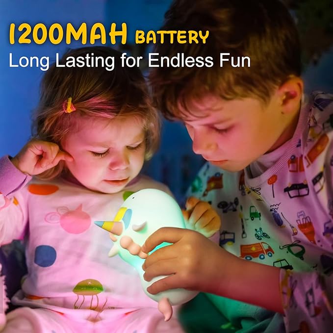 • 🦄 【Safe & Durable Unicorn Companion】 Our unicorn night light is expertly crafted from BPA-free, food-grade silicone, ensuring a safe and playful experience for kids. With its soft and resilient material, night light can be squished and shaped at will, quickly returning to its original nightlight form. The reinforced silicone outer layer provides added durability, making it resistant to accidental drops and ensuring lasting enjoyment. The cute lamp can be one of the best choice for gifts for kids and toddler night light.