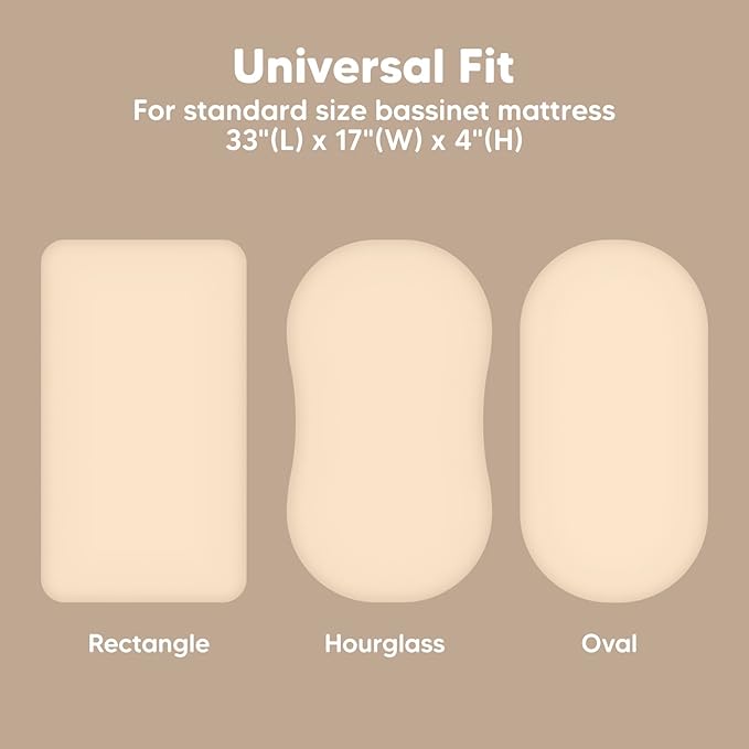 • 2-Pack Bassinet Fitted Sheets - KeaBabies Soothe Bassinet Mattress Sheets, sized at 33" x 17" with a depth of up to 4", provide a universal fit for all bassinet mattress pad types. They can be used as hourglass, oval, rectangle bassinet sheets.