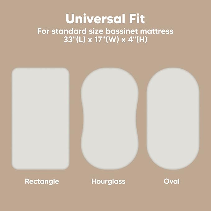 • 2-Pack Bassinet Fitted Sheets - KeaBabies Soothe Bassinet Mattress Sheets, sized at 33" x 17" with a depth of up to 4", provide a universal fit for all bassinet mattress pad types. They can be used as hourglass, oval, rectangle bassinet sheets.