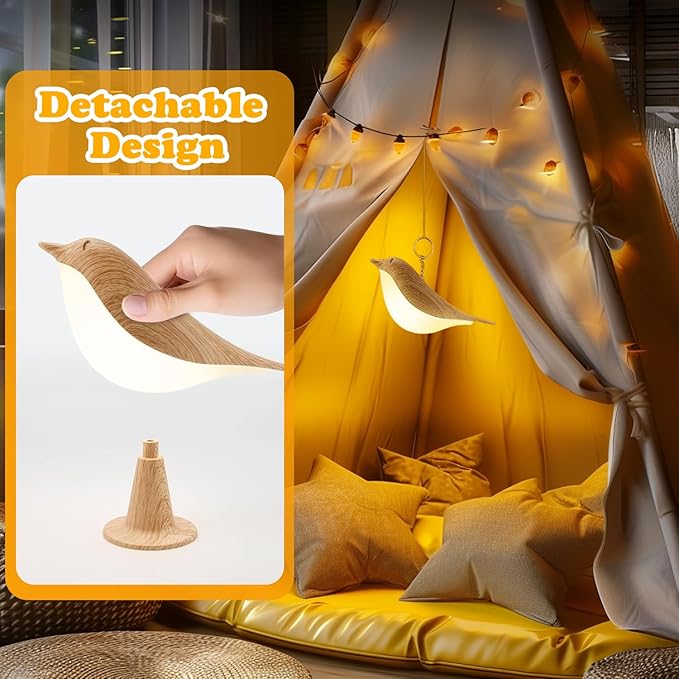 • 【Detachable & Cordless Design】The bedside lamp restores the appearance of the bird, features a detachable base and a hangable ring on the back, which is a unique decoration to allow you to hang it anywhere.This bird light makes you easy to carry everywhere at dark night without tumbling.