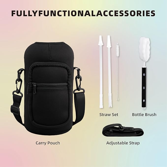 • Exceptional Service: You will get a high-quality 1/2 gallon water bottle, 2 straws, 1 straw brush, 1 bottle brush, 1 water b sleeve with strap and a exquisite packaging box. Additionally, we offer a 1-year after-sales service to ensure the best customer experience.