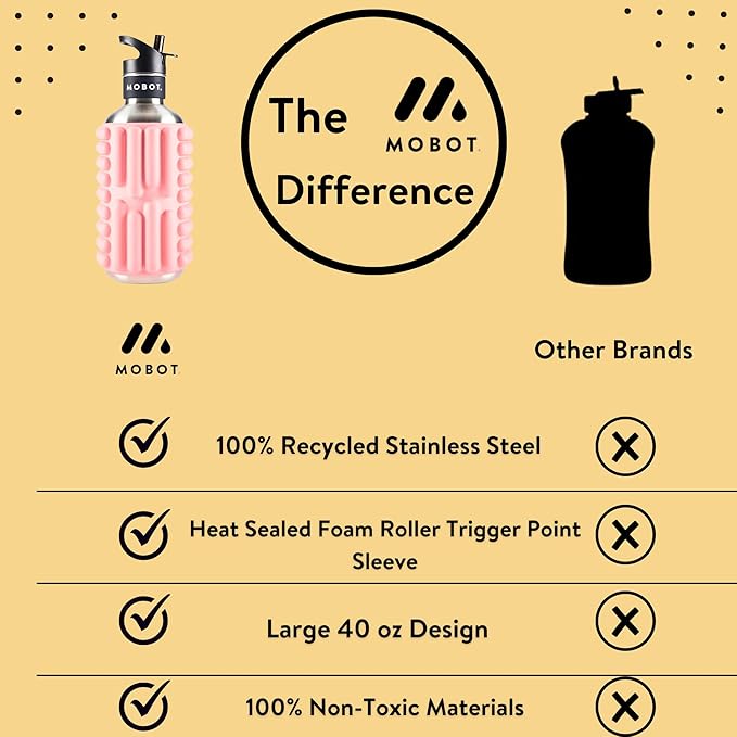 • GYM BOTTLE: Whether you're a seasoned athlete or just starting your fitness journey, our Mobot foam roller water bottle is your ultimate companion, offering hydration, muscle relief, and convenience in one.