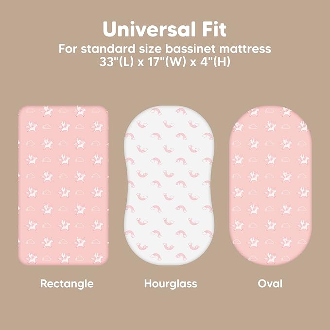 • 2-Pack Bassinet Fitted Sheets - KeaBabies Isla Bassinet Mattress Sheets, sized at 33" x 17" with a depth of up to 4", provide a universal fit for all bassinet mattress pad types. They can be used as hourglass, oval, rectangle bassinet sheets.