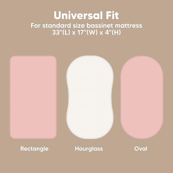 • 2-Pack Bassinet Fitted Sheets - KeaBabies Isla Bassinet Mattress Sheets, sized at 33" x 17" with a depth of up to 4", provide a universal fit for all bassinet mattress pad types. They can be used as hourglass, oval, rectangle bassinet sheets.