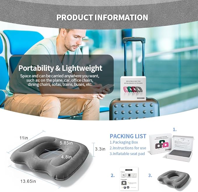 • Versatile and Multi-Scene Use: Our inflatable cushions are perfect for a variety of settings, from the office to the car to the home. They are portable and easy to carry, making them a convenient and practical accessory for anyone looking to improve their comfort while sitting.