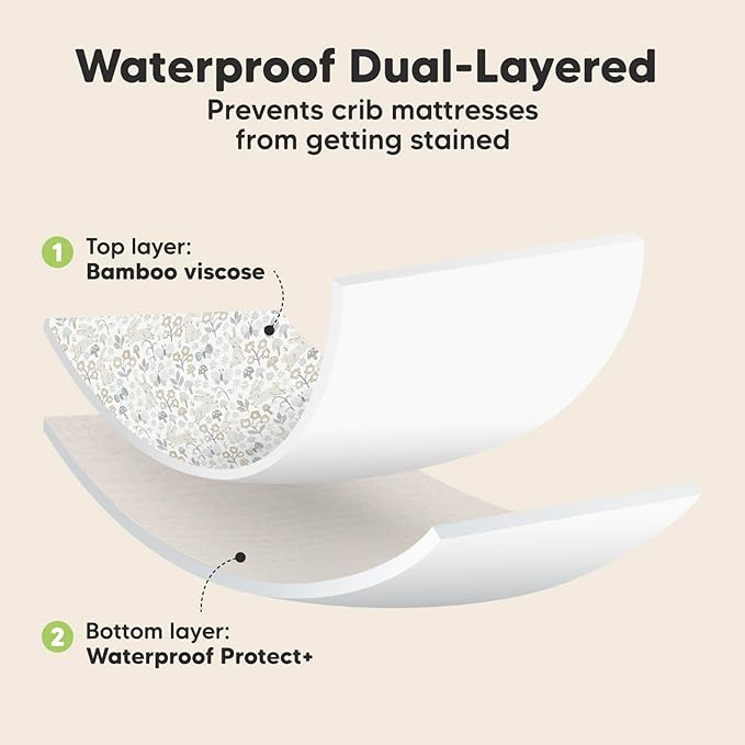 • Quality Doubled Down - Double-layered, double-stitched, and double the value. These machine-washable, dryable waterproof crib sheets offer lasting, reliable protection for your baby's crib mattress, giving you more time for the things that matter.