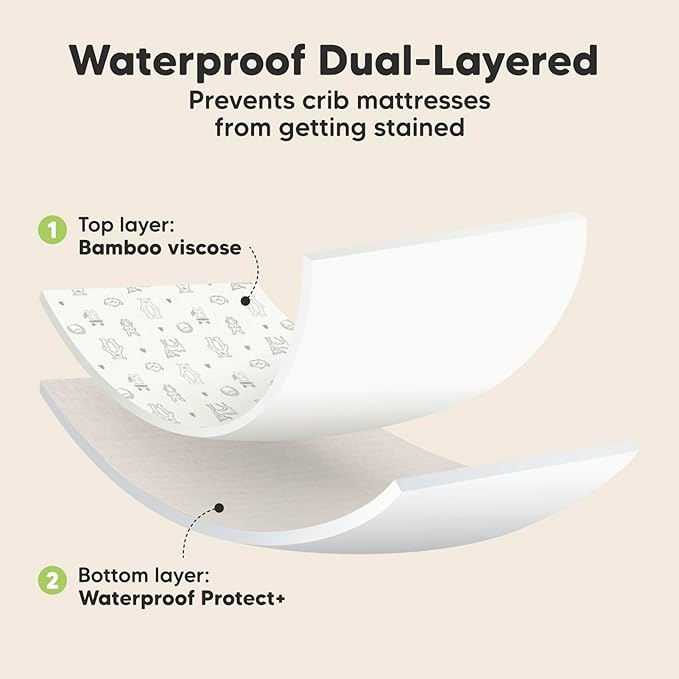 • Quality Doubled Down - Double-layered, double-stitched, and double the value. These machine-washable, dryable waterproof crib sheets offer lasting, reliable protection for your baby's crib mattress, giving you more time for the things that matter.
