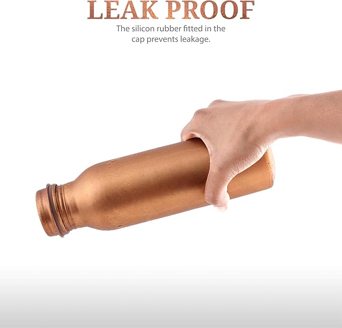 • Leak-proof design : This copper water bottle features a leak-proof design that ensures your water stays inside the bottle and doesn't leak out. The lid is securely attached to the bottle, so you can carry it with you wherever you go without worrying about spills or leaks.
