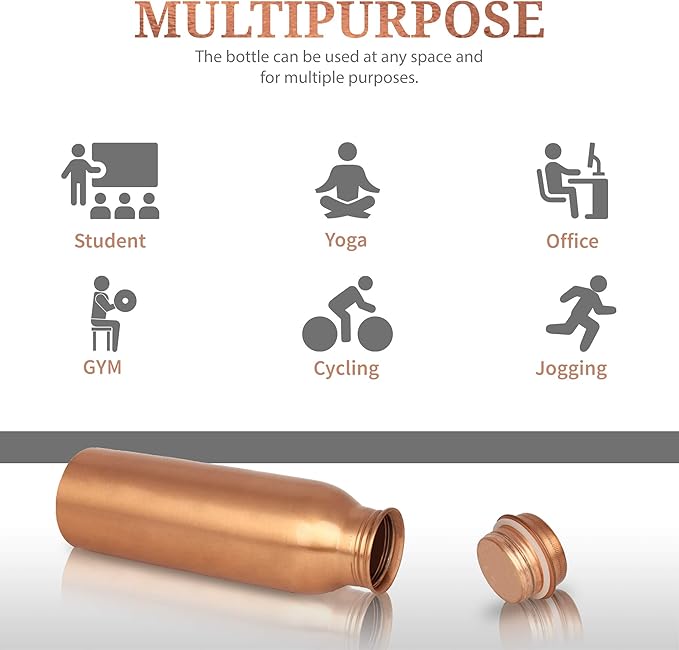• Stylish and functional : Not only is this copper water bottle functional, but it also has a stylish design that is perfect for sports, fitness, or yoga. The sleek and elegant design makes it a great accessory to carry around, and it's sure to turn heads wherever you go.