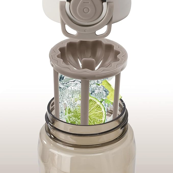 28oz Water Bottle with Fruit Infuser Strainer, BPA-Free Sports Water Bottle, One-Click Clear Water Bottle with Safety Lock for Office, Gym, Outdoors, Grey