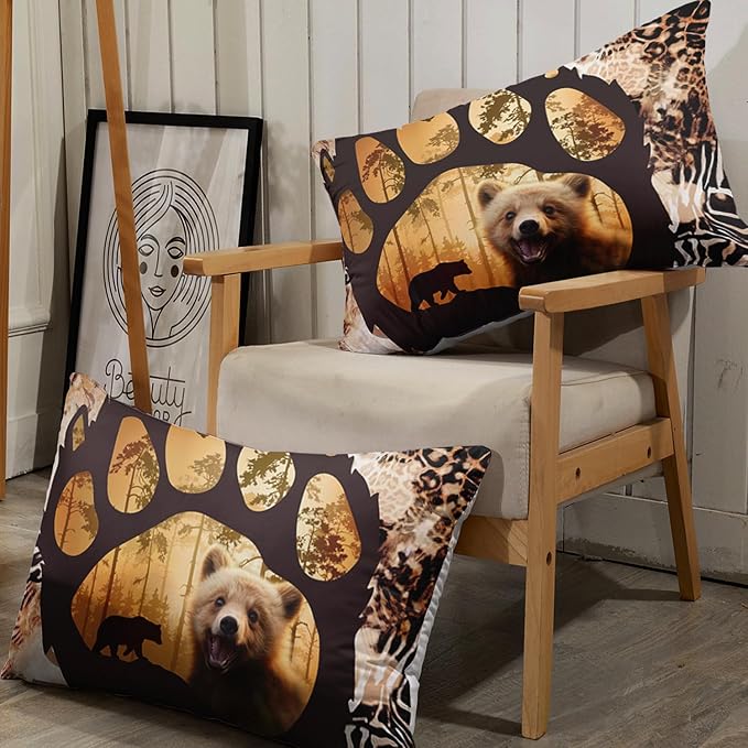 AILONEN Cute Bear Twin XL Fitted Sheet Set for Girls Boys, Bear Paw Sheet Leopard Print Fitted Sheet with 2 Pillowcases,3 Pieces Rustic Vintage Bear Bed Sheet Set