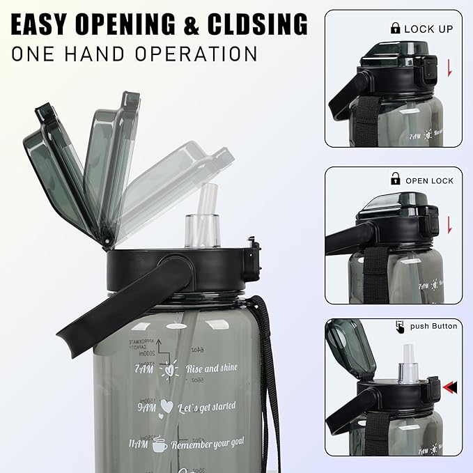 • [Large Gallon Water Jug]: Made from safe, BPA-free materials, this 64 oz water bottle with a straw and measurements marked makes sure you drink healthily with every sip. It holds 8 cups of water - the daily recommendation by health experts - meaning less frequent refilling.