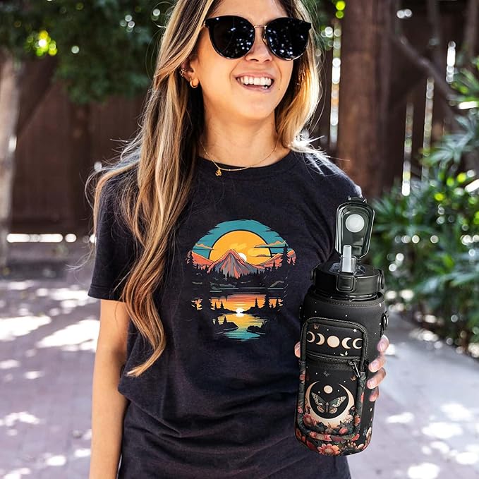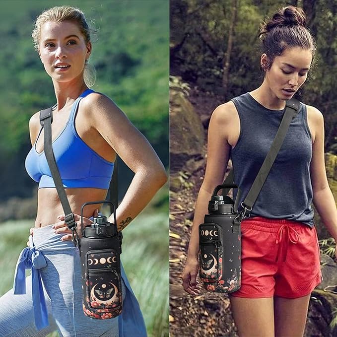Moon Butterfly Flower Half Gallon Water Bottle with Sleeve, 64 Oz Water Bottle with Measurements Marked, Leakproof-Free Drinking Water Bottle, Sports Water Bottle BPA Free Half Gallon Water Jugs