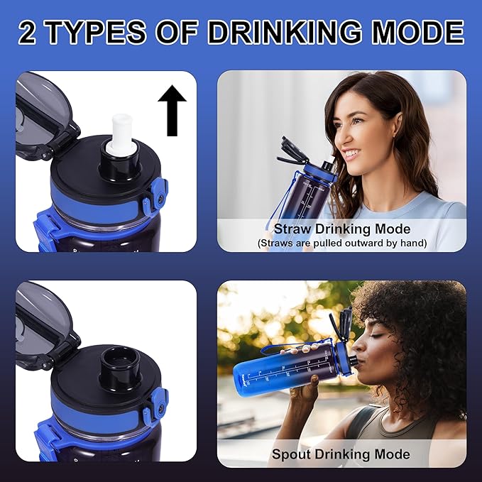• Motivational Time Mark: The water bottle is designed with time markers and motivational maxims to help you drink enough water throughout the day. Our leak-proof water bottles provide you with more freedom and comfort when drinking water!