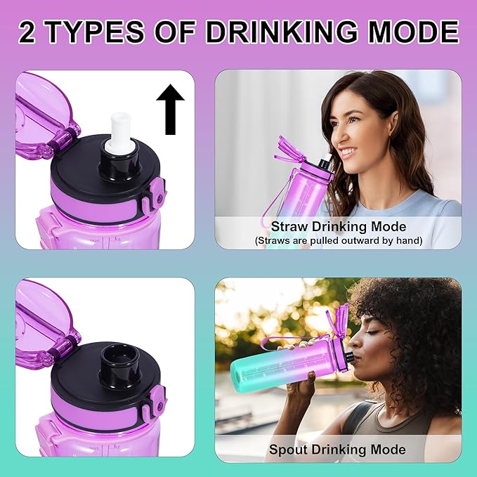 • Motivational Time Mark: The water bottle is designed with time markers and motivational maxims to help you drink enough water throughout the day. Our leak-proof water bottles provide you with more freedom and comfort when drinking water!