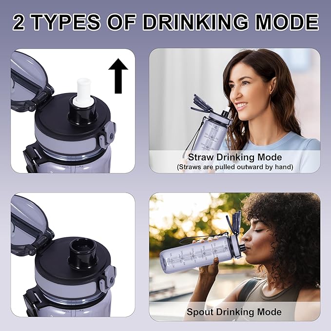 • Motivational Time Mark: The water bottle is designed with time markers and motivational maxims to help you drink enough water throughout the day. Our leak-proof water bottles provide you with more freedom and comfort when drinking water!