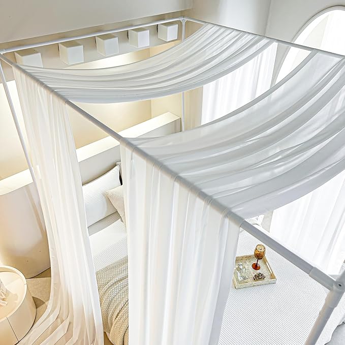AIKASY White Bed Canopy Scarf for King - Luxury Sheer Canopy Bed Curtains with Light - Suitable for Four-Poster Bed, Metal Bed Frame, Wood Bed Frame -2pic