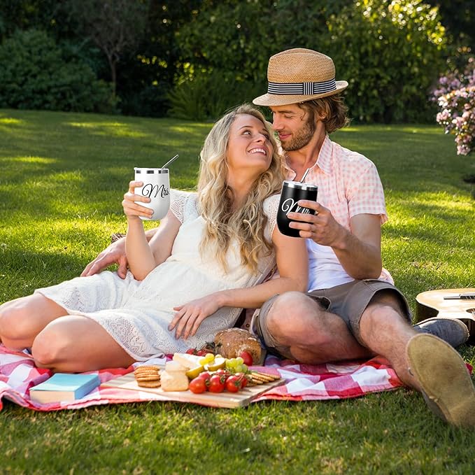 AW BRIDAL Mr and Mrs Gifts Bridal Shower Gifts His and Hers Gifts Wedding Gifts, Couple Engagement Gifts- Wine Gift Bag Wine Cooler Bag Insulated Wine Carrier Tote with Tumblers