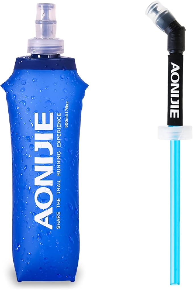 YAPJEB Soft Flask Collapsible Water Bottles, TPU Soft Water Bottle Folding Flask for Hydration Pack, BPA Free Folding Water Bottle Ideal for Cycling (500ml/16.9oz with Straw)