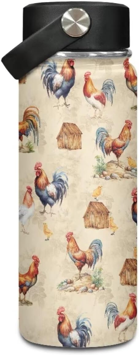 Chicken Insulated Water Bottles with Handle Stainless Steel Metal Water Bottle, Cold & Hot Water Bottle 20 Oz, Leak Proof Travel Cup