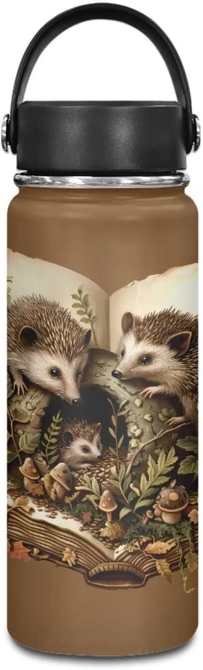 Cute Hedgehog Insulated Water Bottles with Handle, 20 Oz Stainless Steel Metal Water Bottle, Cold & Hot Water Bottle Travel Cup for Travel Camping Hiking