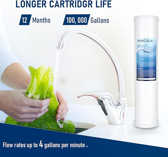 • Whole House Filtration: With large capacity, PERCOLA sediment filter cartridge is ideal for whole house filtration use, which fits into systems that filter water throughout the home for appliances, sinks, bathrooms, and laundry. Whole house water filter systems are great solutions to help protect your pipes and appliances from sediment buildup.