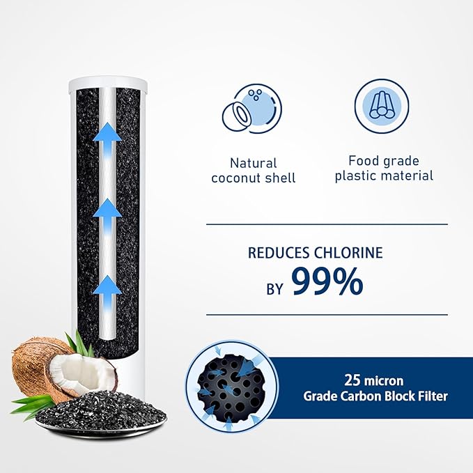 • Durable & safe materials: porous polyethylene shells and durable polypropylene end caps with a layer of granular activated carbon sandwiched between the shell and the core are certified by authorities as safe materials, and the shells contain no adhesives, reagents, solvents, antistatic materials or wetting agents.