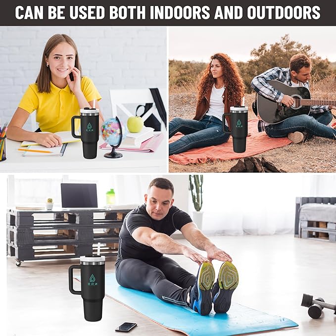 40oz stainless Steel Insulated Tumbler with Handle, lid and straw for cold water, Iced tea, or coffee - 100% Leak-Proof - Cupholder Friendly Travel Mug- Gifts for Women Men Him Her (Black)