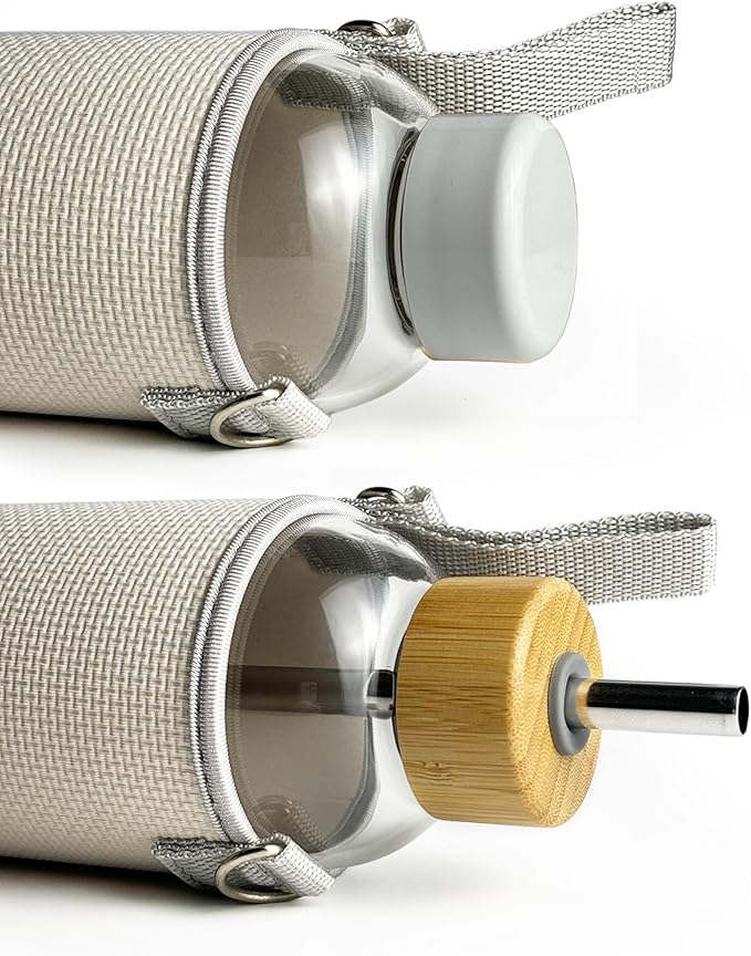 • Enhanced Grip and Safety: The neoprene cover features textured patterns for improved grip, reducing the risk of slips or spills. The silicone sleeve at the bottom of the stainless steel straw adds an extra layer of protection, safeguarding the glass bottle against impact damage.
