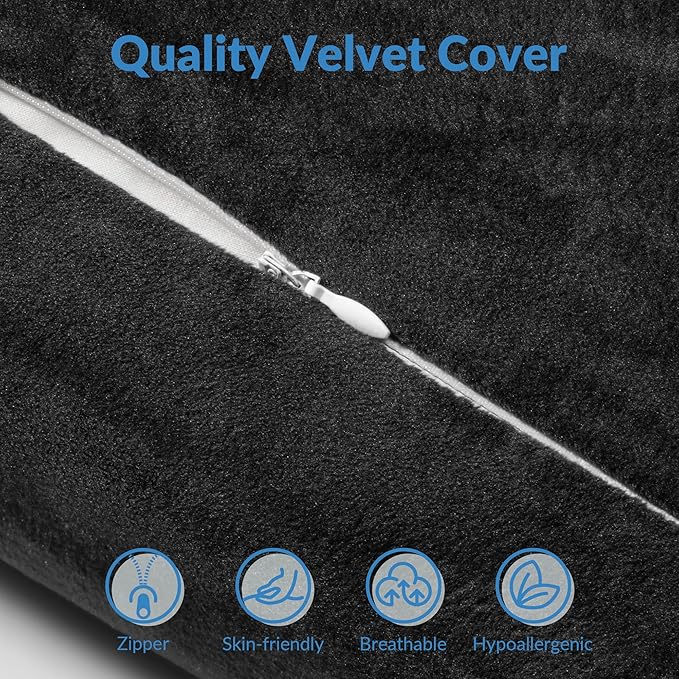 AM AEROMAX 32" King Size Contour Memory Foam Pillow, Neck Pillow for Neck Pain Relief, Neck Orthopedic Sleeping Pillows for Side, Back and Stomach Sleepers(Black,Velvet)