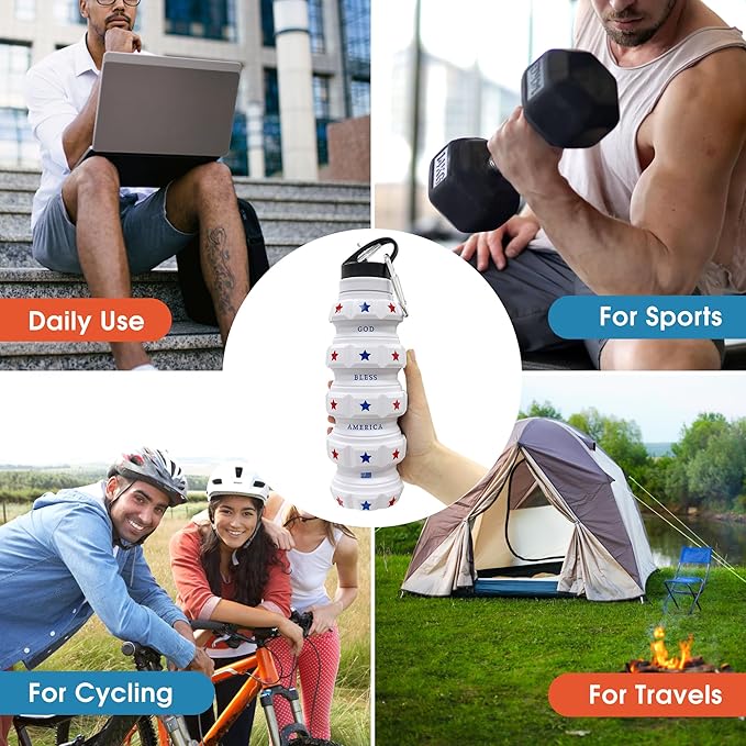 • FLAG DAY PRIDE - Honor Flag Day with our silicone water bottle collapsible, and the inscription - God Bless America. This piece of patriotic decor complements other patriotic flags. It's perfect for showing your love for America on this special day.