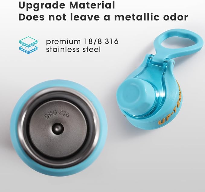 • Made of 18/8 316 food grade stainless steel, the water bottle is durable, it will never leave a metallic taste or rust. Portable carrying handle design makes it easy to carry around on a daily basis. Its wide mouth opening makes filling and cleaning your ice cubes quick and easy.