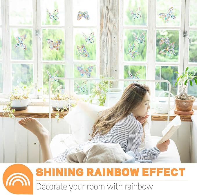 • 【Package Include】The package contains 80pcs butterfly-shaped window stickers made of transparent prismatic vinyl that convert the sun's rays into a stunning rainbow in your room.